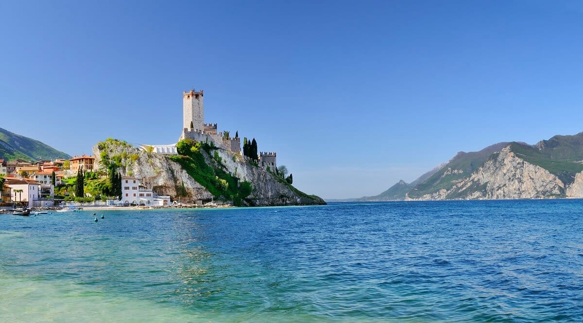 La leggenda narra che nell’806 re Pipino d’Italia (il figlio di Carlo Magno) fu ospite del castello, mentre secoli dopo passò nelle mani della nobile famiglia Della Scala, che nel XIII secolo iniziò un’importante opera architettonica con finalità difensiva. Per più di un secolo, dal 1277 al 1387 il castello fu la residenza degli Scaligeri, poi fu occupato dai Visconti, nobile famiglia milanese, che ne perse la proprietà nel 1403. In seguito per circa dieci anni il castello fu al centro di una disputa territoriale tra la Repubblica di Venezia e il Sacro Romano Impero. Nel 1797 la proprietà passò ai francesi di Napoleone e in seguito agli austriaci, i quali vi rimasero fino al 1798. Una manciata di anni dopo lo scrittore tedesco Goethe lo descrisse nel suo “Viaggio in Italia (Italienische Reise, 1813 – 1817)”; a lui sono dedicati un museo e un busto in loco. La torre principale (maschio) si erge per circa 70 metri sul lago e ha una forma irregolare. Al penultimo livello è stato rinvenuto un graffito con il nome Corrado II e la data 1131 d.C., a lasciar supporre che è proprio questa la data di fine lavori. Nella torre si sviluppano cinque locali, l’ultimo di questi è stato denominato stanza della vedetta.
